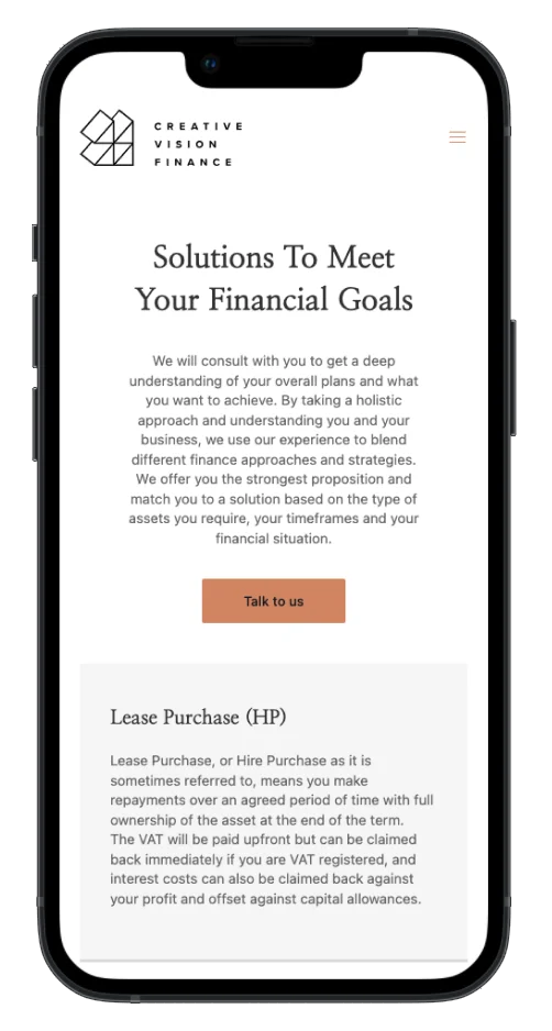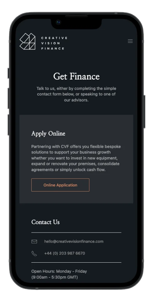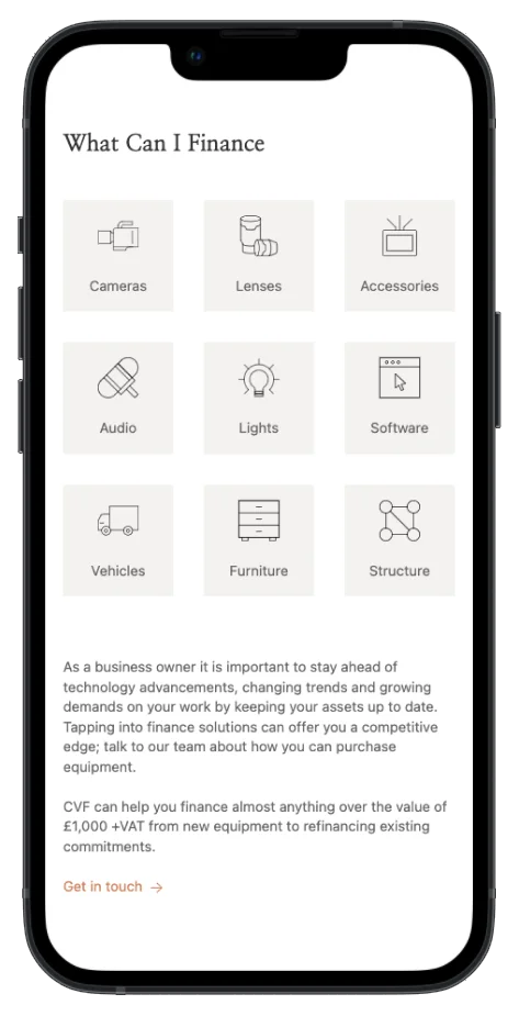 Creative Vision Finance's target audience are highly creative people, so it made sense to move away from the corporate styling you'd expect from typical lenders to something that resonates with them better.